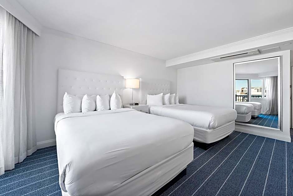 Located on the 2nd and 3rd floor of the East Wing and featuring a side ocean view balcony, this studio features a seaside décor with a nautical flair. A flat-screen TV, Carrera-marble style bathroom with glass shower, hairdryer, plush linens and organic bath products are also available. There is a small dining area and galley kitchen with cook-top, microwave, compact refrigerator Keurig® coffee-maker, cookware and dishes completes the studio.