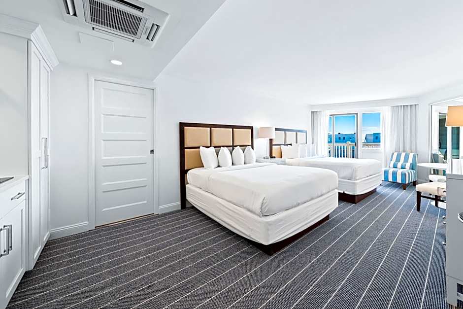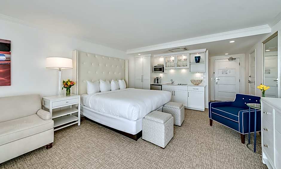 Located on the 2nd and 3rd floor of the East Wing and featuring an ocean view balcony, this studio features white interiors and wood floors. A flat-screen TV, a seating area, a queen size sofa bed and Carrera-marble style bathroom with glass shower, hairdryer, plush linens and organic bath products are also available. There is a dining area and galley kitchen with cook-top, microwave, compact refrigerator, Keurig® coffee-maker, cookware and dishes completes the studio.